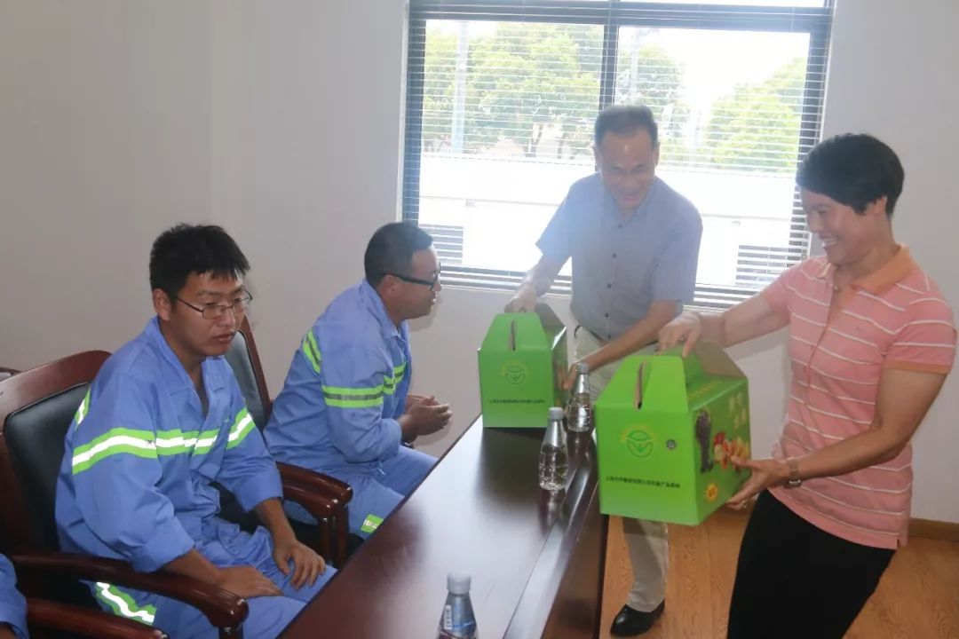 ? ? ? ? 8月1日下戰書,為中團體離開鎮市容所展開“夏季送清冷”慰勞勾當,為生產一線的環衛工人帶來了夏季的關切與問候,同時奉上團體旗下生果基地自立綠色產物。
